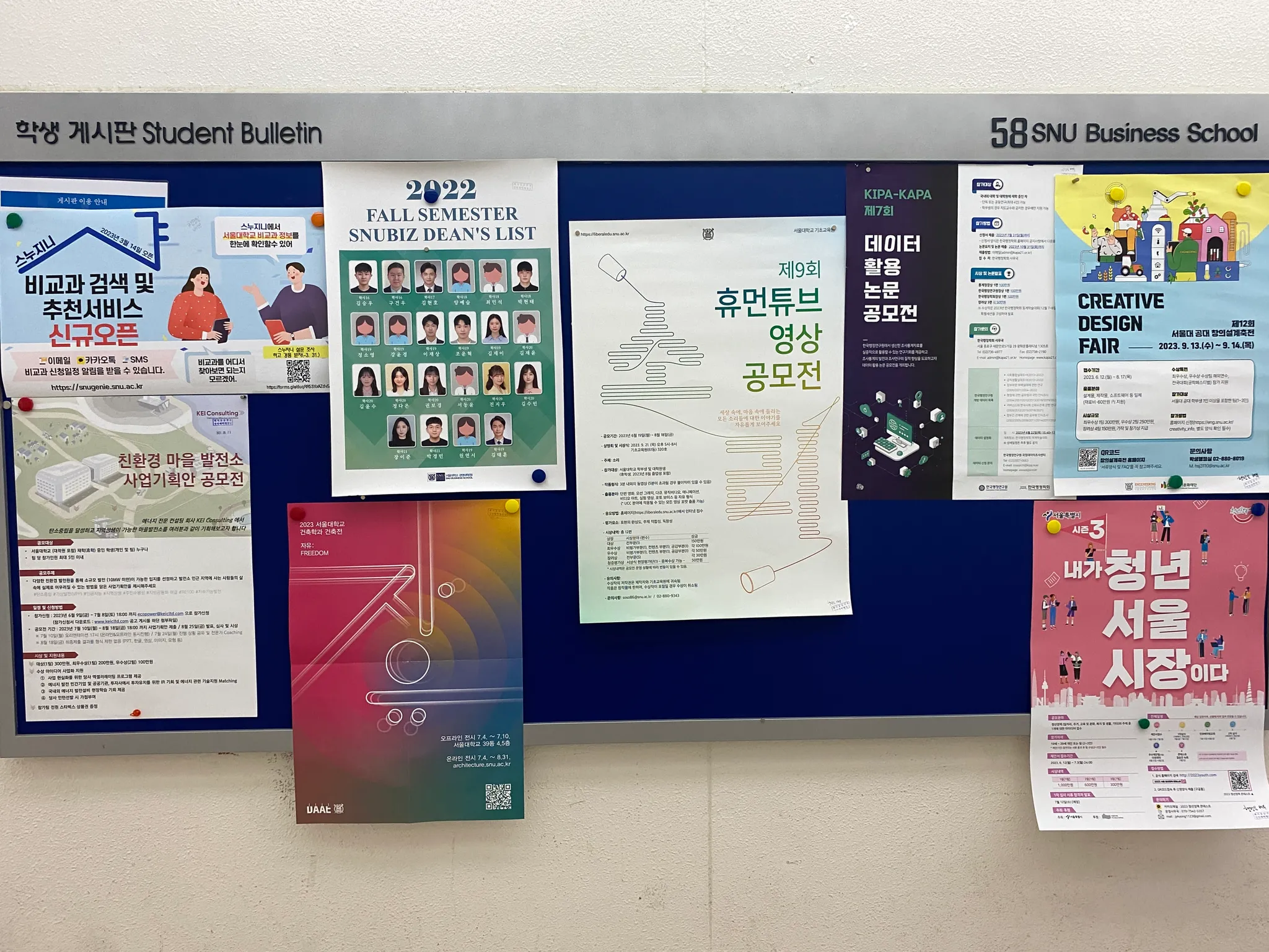 58동 103호 우측의 집행부 게시판은 학생회장단과 집행부만 부착이 가능합니다.